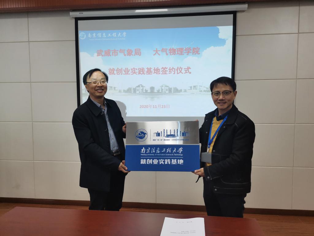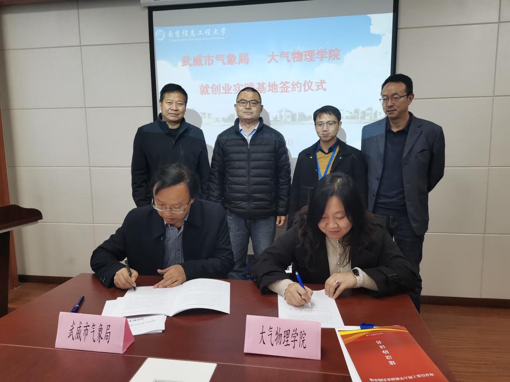 2020年11月23日上午,甘肃武威市气象党组书记、局长陈雷和党组副书记、副局长刘春明一行到大气物理学院参加就创业实践基地签约暨授牌仪式。大气物理学院党委书记马革兰,副书记、副院长陈建坤,副院长卜令兵和甘肃籍教授张其林参加此次签约暨授牌仪式。 院党委书记马革兰先向参会领导简要介绍学院的总体情况,强调创新实践就业基地建设的意义和作用,一方面为学生的成长、成才搭建平台,另一方面也促进学院教师与气象部门的产学融合。刘局长表示武威市气象局有大气物理学院有着深厚的友谊和合作,希望通过与学院签署合作框架协议和就创业实践基地建设协议为契机,开展更全面、深层次的合作,实现人才培养、科技创新更上新台阶,之后双方就合作创新开展了深入的讨论。最后,武威市气象局局长陈雷和学院代表马革兰书记、陈建坤副书记分别签署了合作框架协议和就创业实践基地协议,并进行了授牌仪式。