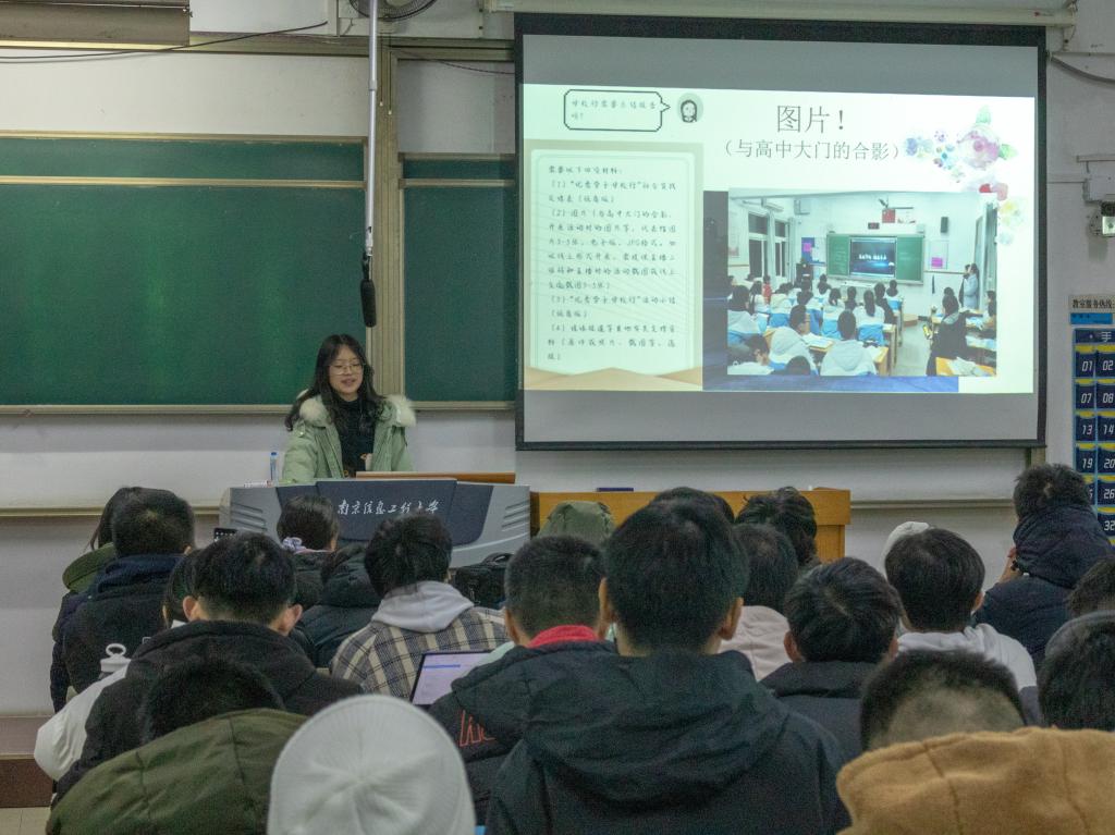 在母校行动员大会上,汪瑶老师详细为同学们解释了学校发的有关通知,并仔细分析解答了如何解决在与母校沟通联系以及活动过程中可能遇到的问题,鼓励同学们迎难而上,积极传播南信大声音。之后我院开展了母校行经验分享会,四位开展母校行经验丰富的同学分别从活动报名、活动前期准备、活动过程中的注意点、活动后的总结、介绍内容的生动性、如何与母校的学弟学妹们沟通等多个方面进行了交流分享。分享内容丰富,干货满满。四位同学也分享了许多他们母校行过程中经历的有趣故事,传授给新生自己做过母校行后进行总结的一些小技巧。