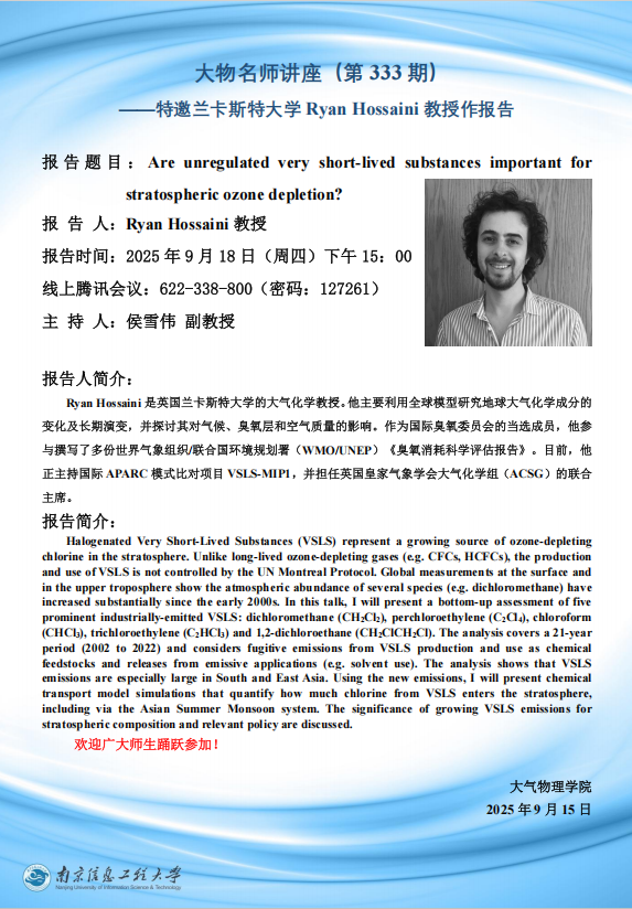 上一条:大物名师讲座(第334期)—特邀国家卫星气象中心总工程师卢乃锰研究员作报告