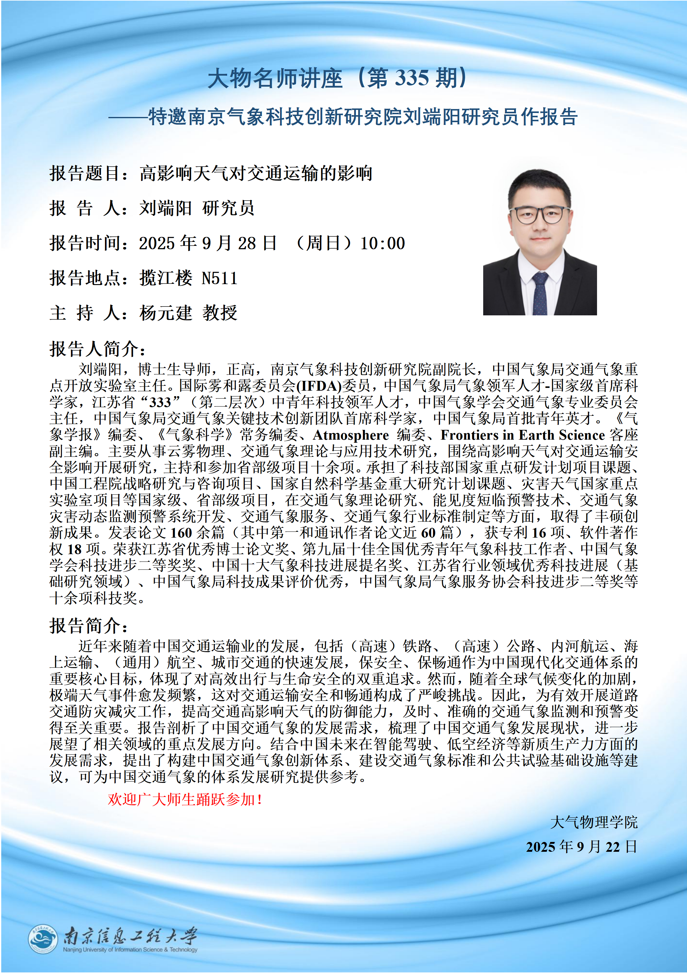 下一条:大物名师讲座(第334期)—特邀国家卫星气象中心总工程师卢乃锰研究员作报告