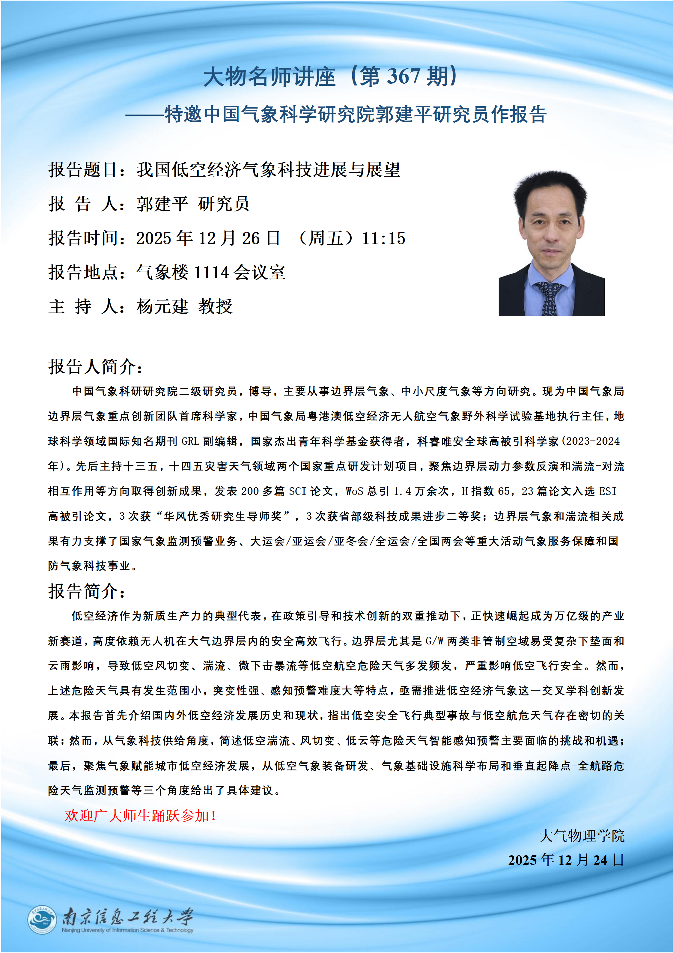 大物名师讲座(第367期)——特邀中国气象科学研究院郭建平研究员作报告