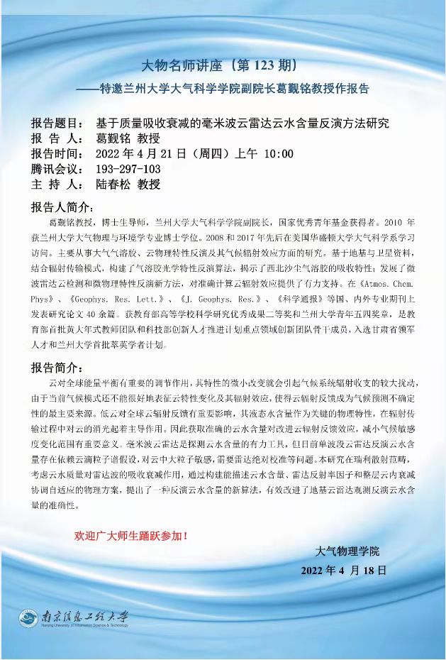 下一条:大物名师讲座(第122期)——特邀中国气象科学研究院沈小静副研究员作报告