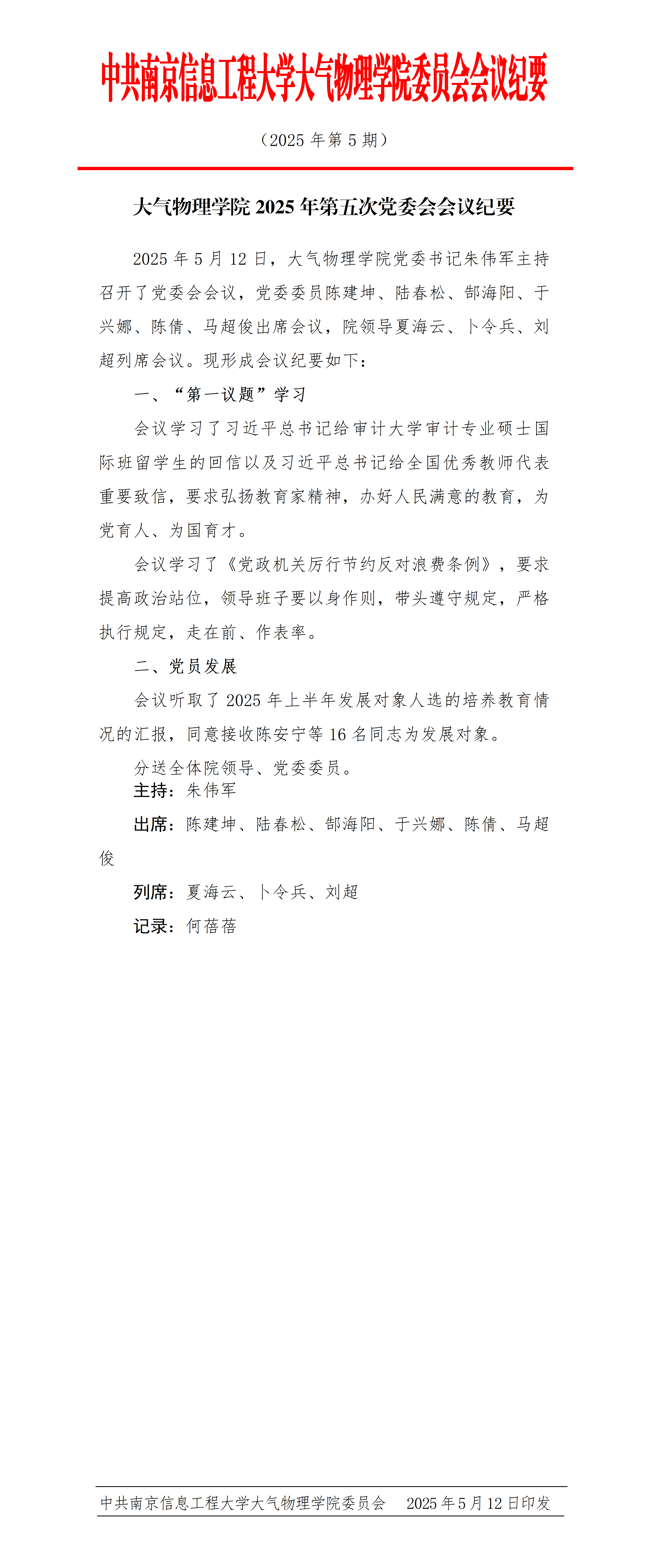 下一条:中共南京信息工程大学大气物理学院委员会会议纪要(2025年第4期)