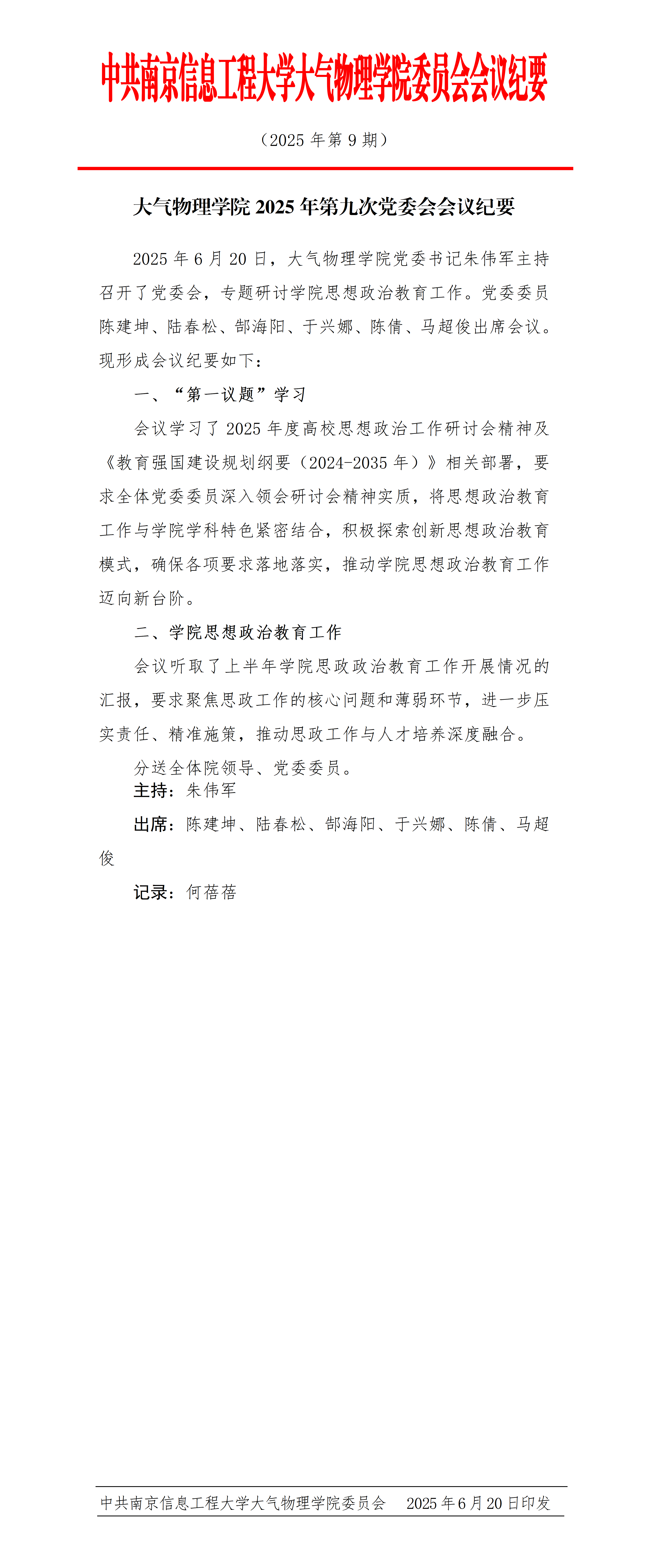 下一条:中共南京信息工程大学大气物理学院委员会会议纪要(2025年第8期)