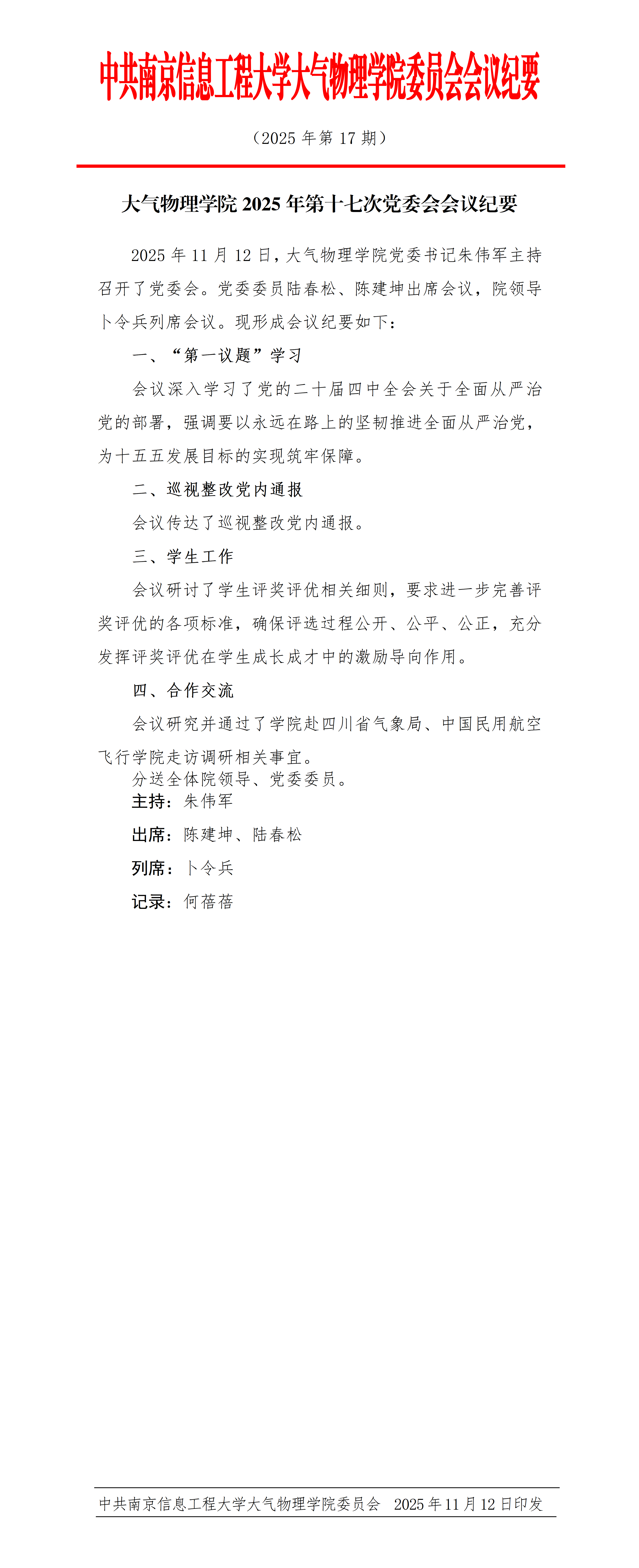 下一条:中共南京信息工程大学大气物理学院委员会会议纪要(2025年第16期)