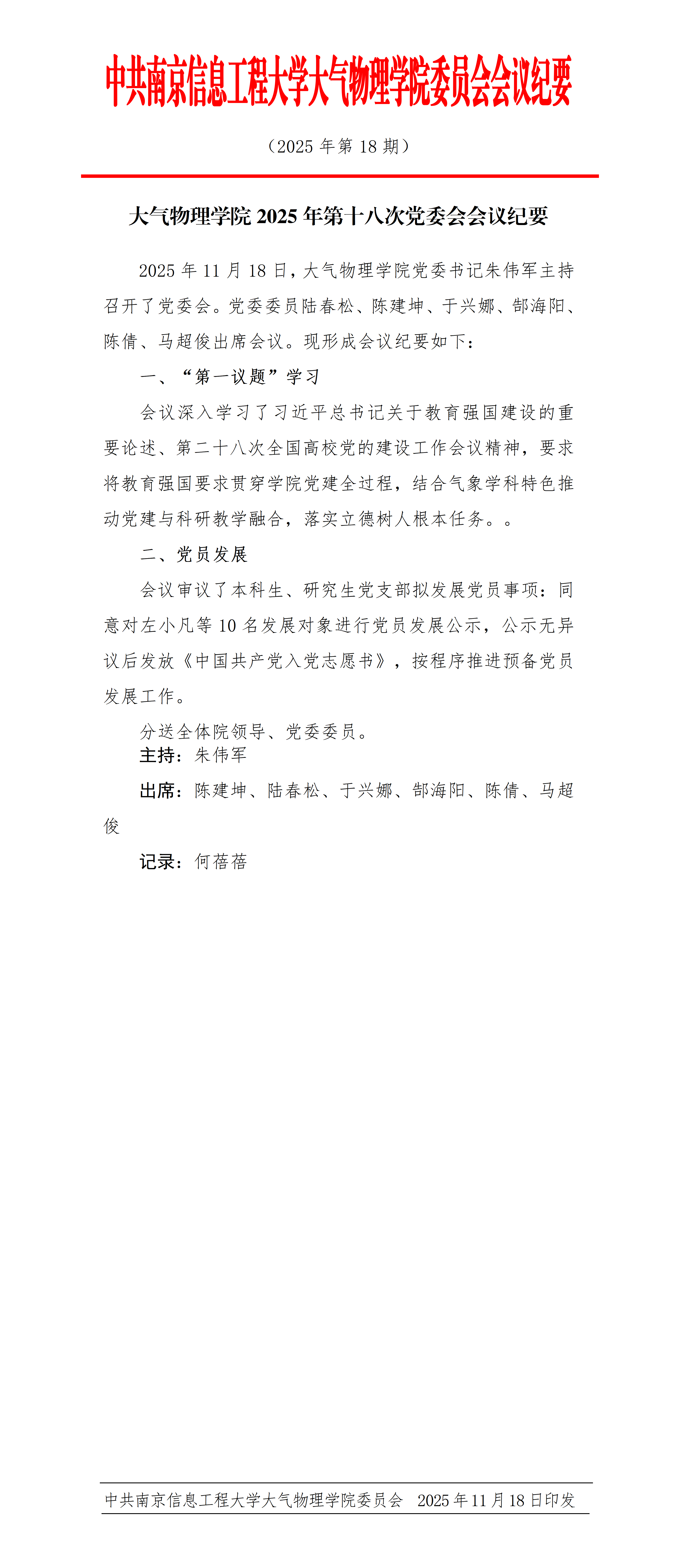 下一条:中共南京信息工程大学大气物理学院委员会会议纪要(2025年第17期)
