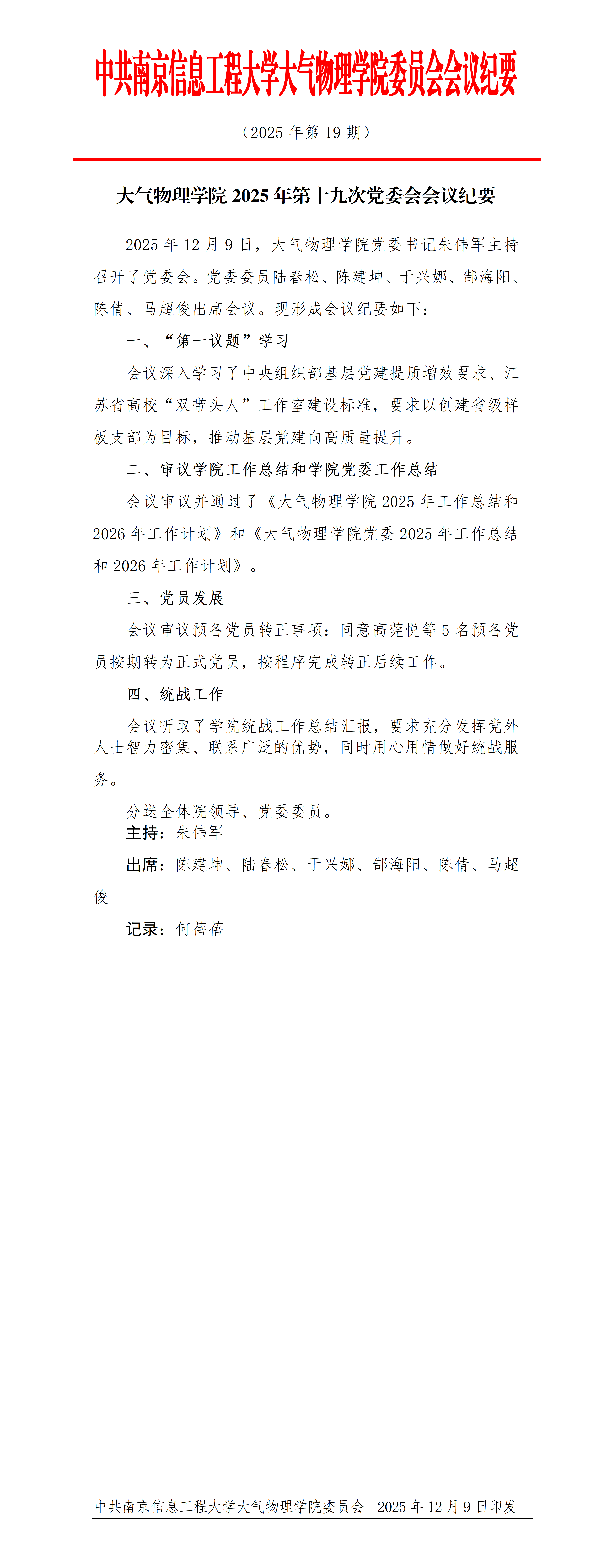 下一条:中共南京信息工程大学大气物理学院委员会会议纪要(2025年第18期)