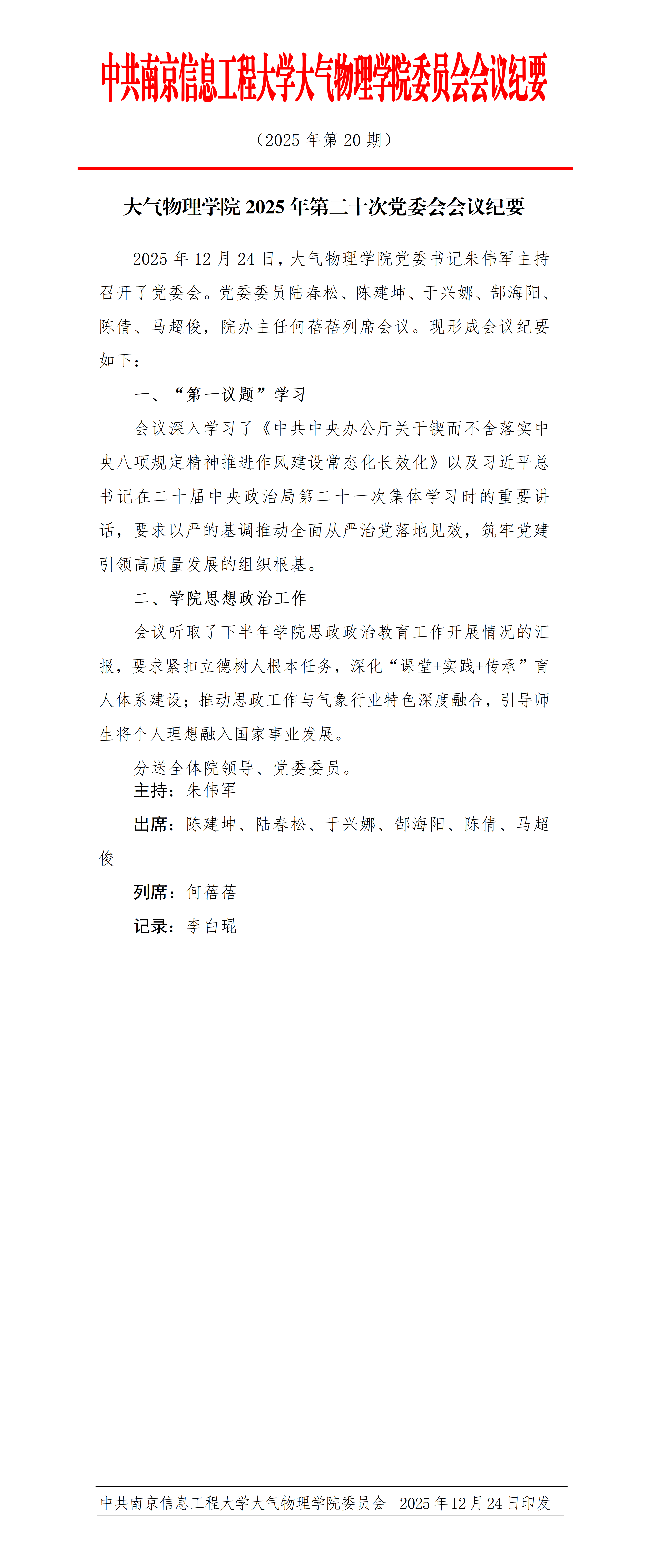 下一条:中共南京信息工程大学大气物理学院委员会会议纪要(2025年第19期)