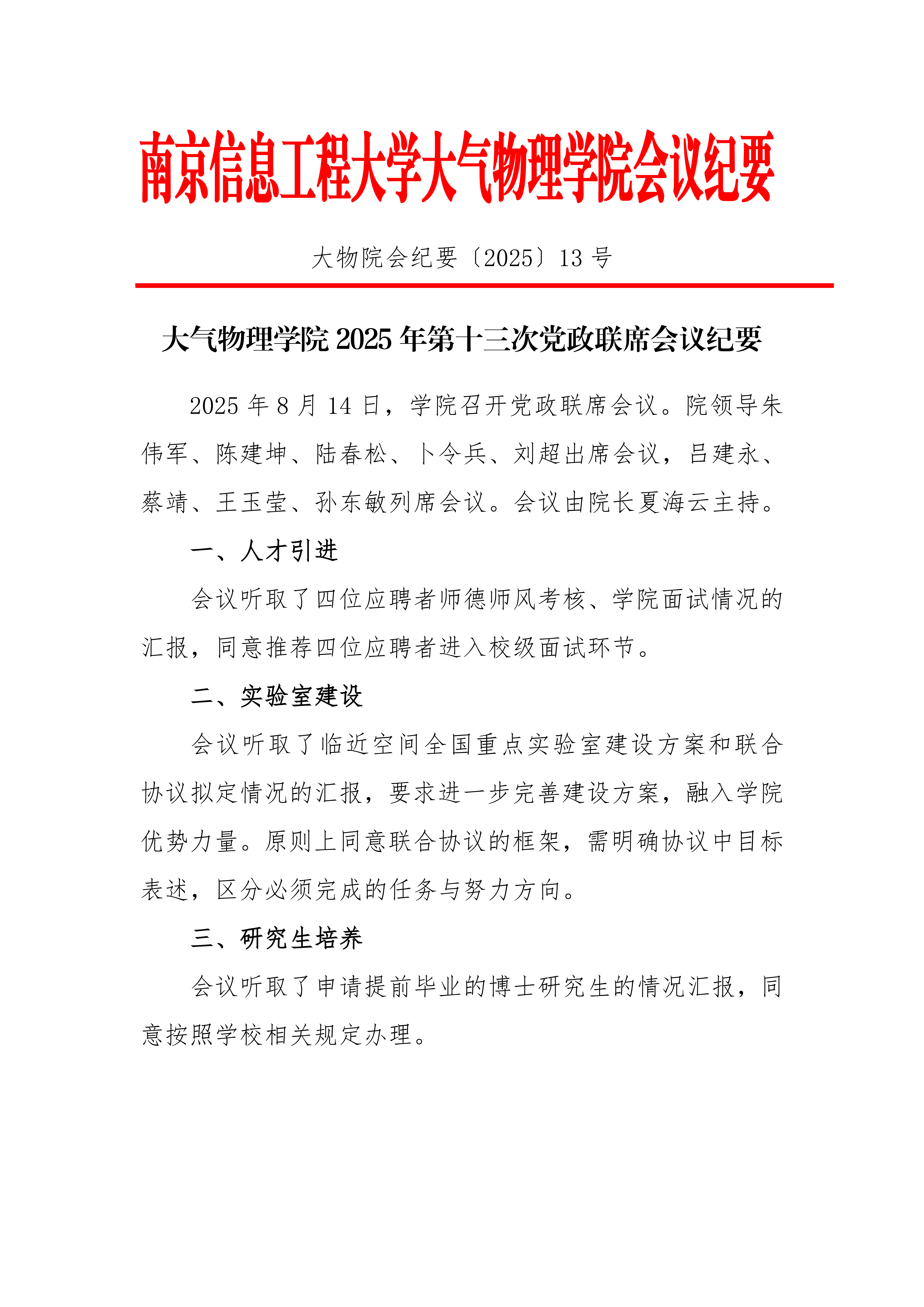下一条:大气物理学院2025年第十二次党政联席会议纪要