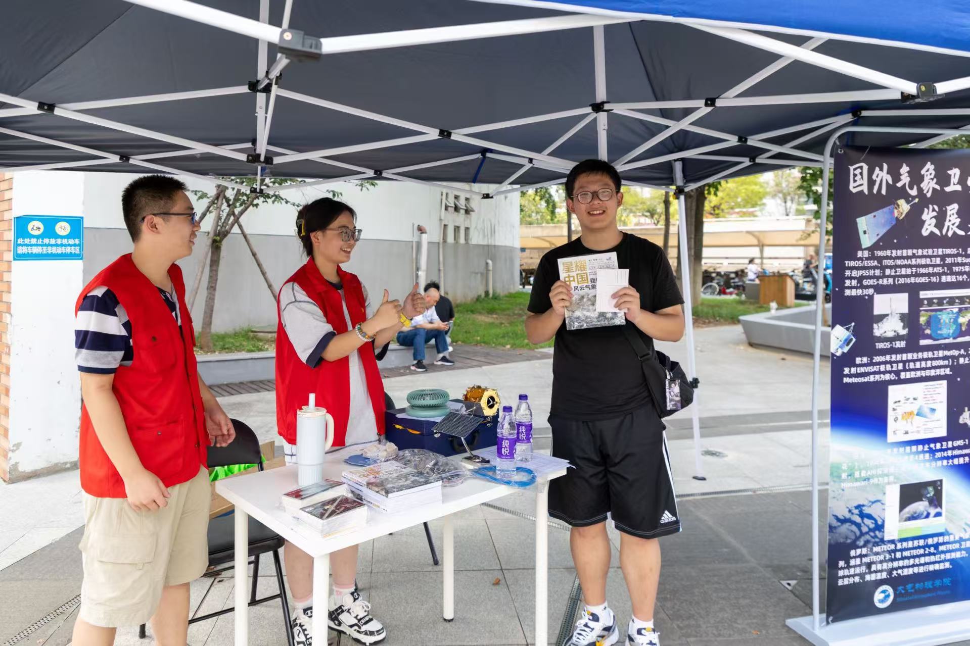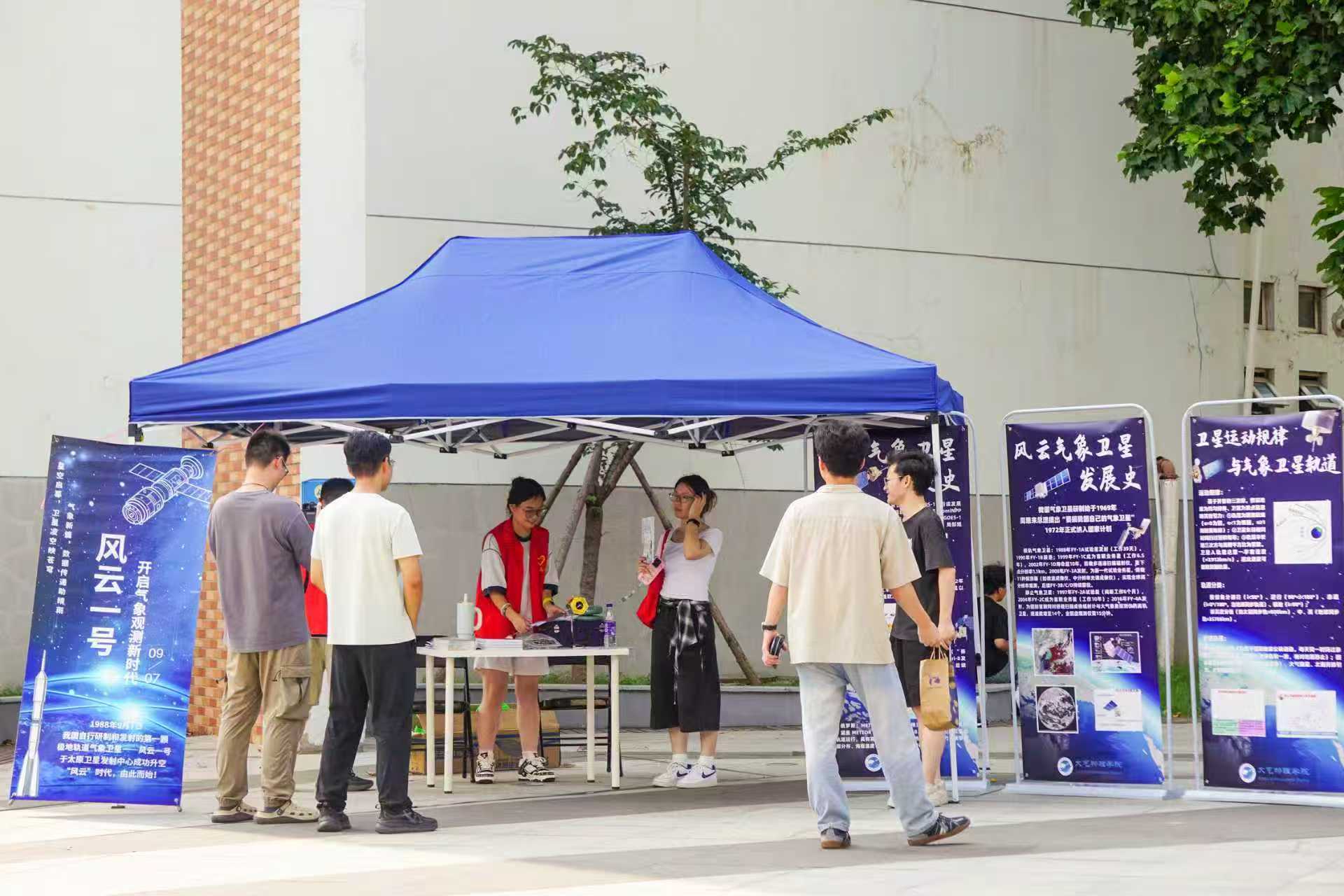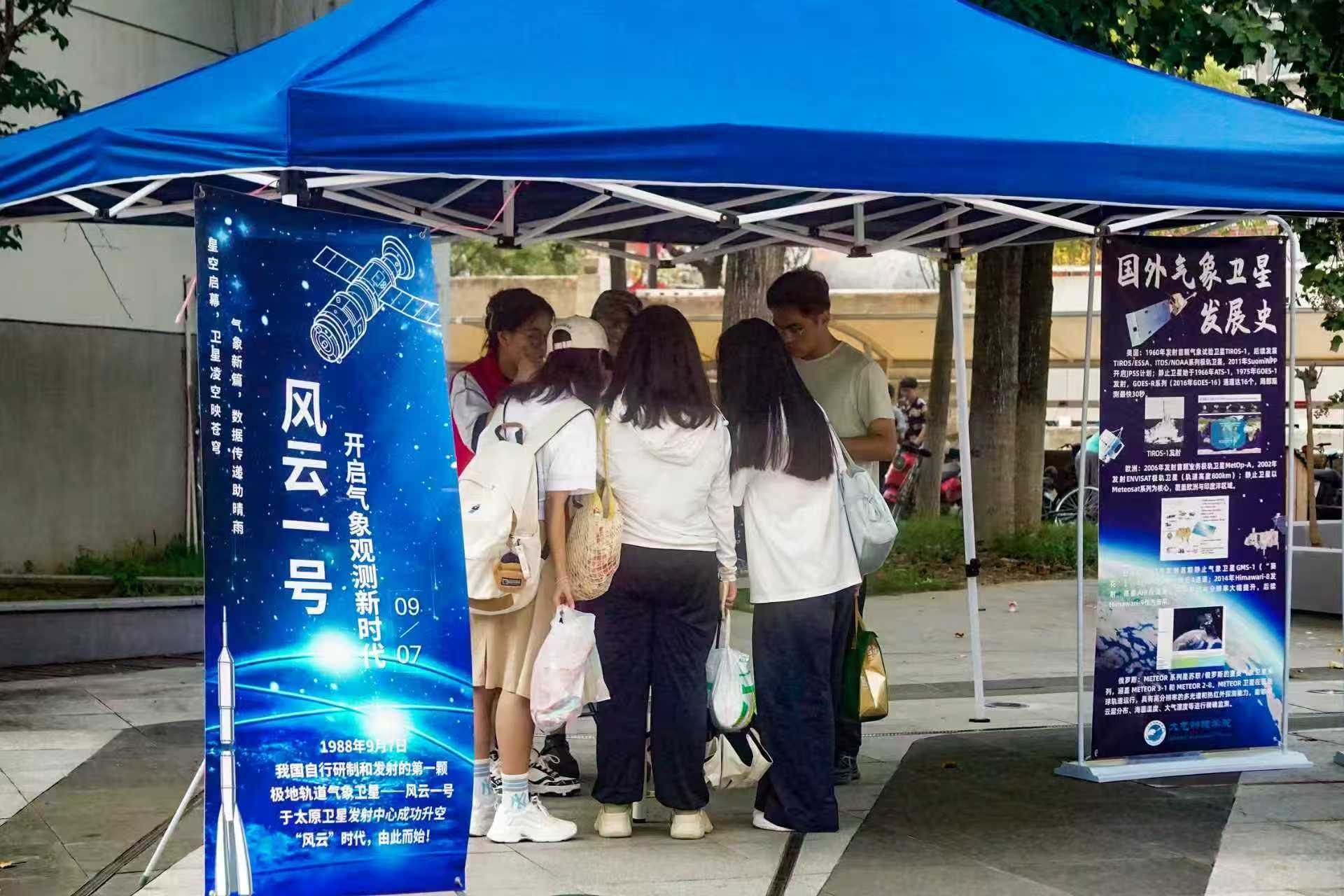 2025年9月7日13:30至16:00,南京信息工程大学大气物理学院于东苑食堂门口举办“星瞰风云·智护地球”气象卫星科普日活动。活动由学院研究生学生会主办,面向全校师生开放,旨在普及我国自主气象卫星的科学知识、观测原理与实用价值,提升科技素养、增强灾害应对能力,并激发科研与创新意识。数百名师生踊跃参与,现场气氛热烈,成为一场集科普教育、互动体验与文化传承于一体的科技盛会。
