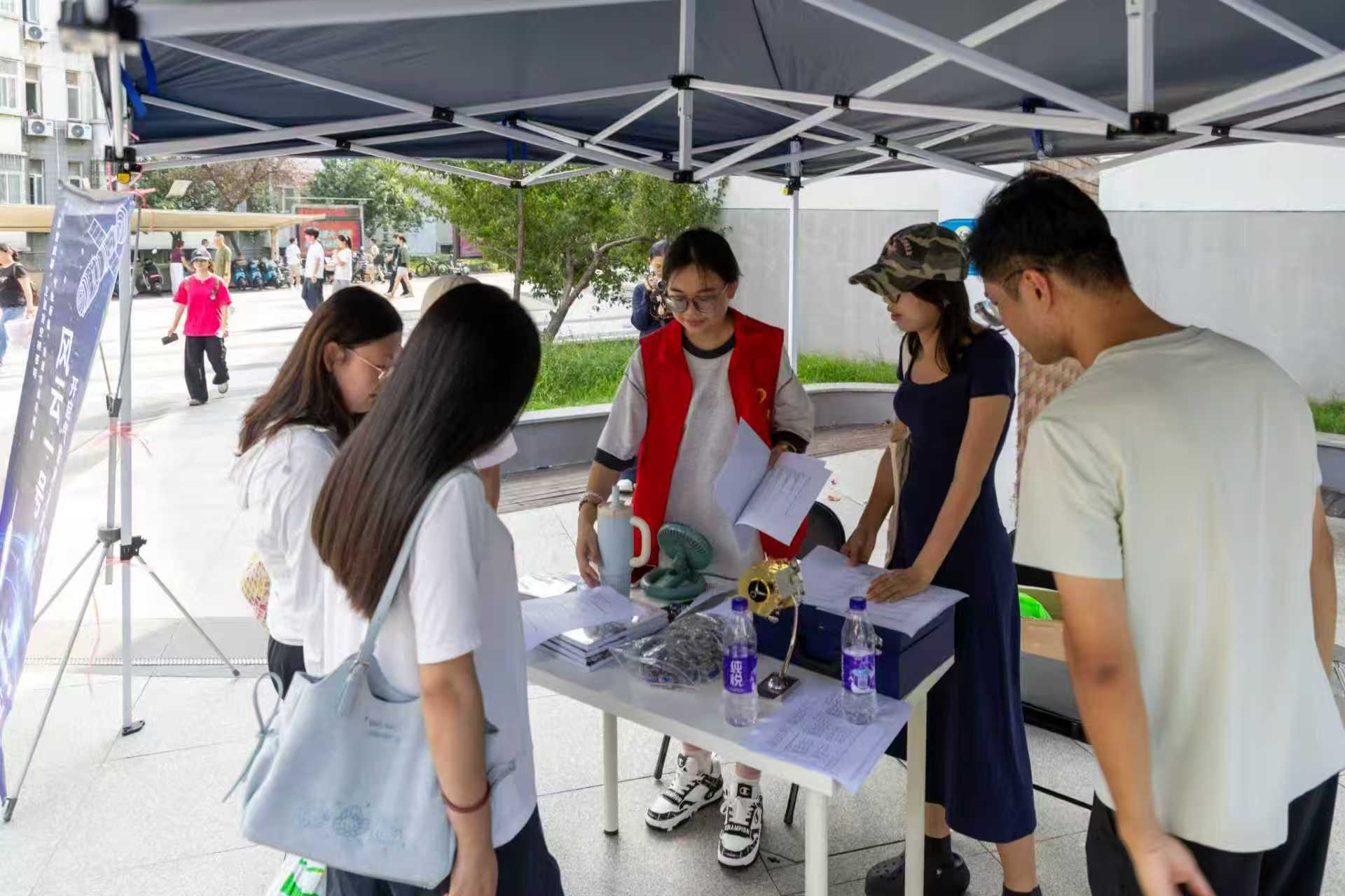 知识问答区域吸引大量师生驻足参与。题目涵盖卫星技术、发展历史、国家政策与民生应用等方面。参与者完成后可获赠风云卫星明信片、钥匙扣等纪念品,优秀者还可赢得《星耀中国:我们的风云气象卫星》科普书籍。现场答题踊跃,气氛轻松而紧张,成为巩固知识与拓展视野的有效平台。