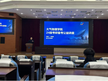 随后,信大云天教育负责人李阳阳老师为同学们作了详细的考研专项指导。他结合最新动态,分析了本年度的考研整体形势与气象相关领域的就业前景,激发了同学们的深造热情。李老师系统梳理了研究生入学考试的科目要点与备考策略,并通过对比历年国家分数线、展示我院具体的考研录取数据,为同学们提供了极具参考价值的院校与专业选择指导。最后,他总结提炼了成功考研的三大关键要素:高效的信息搜集能力、科学的全程备考方案以及持之以恒的奋斗精神。