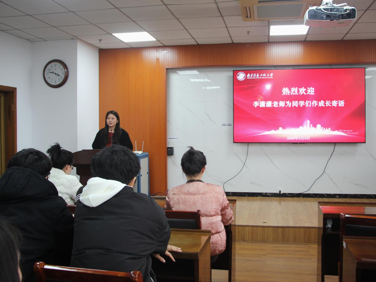 随后,学院学工队伍分别发言,为同学们全面解读学院文化与成长路径。学办主任马超俊首先播放了学院宣传片,通过生动的影像资料,全方位展示了学院和学科的发展历程、师资队伍和科研平台的硬实力以及人才培养的丰硕成果,帮助同学们快速建立起对新学院的整体认知。辅导员王维维、胡玥结合各年级特点,进一步介绍了学院的育人理念与学生工作亮点,引导同学们尽快融入集体,树立明确的学习目标。