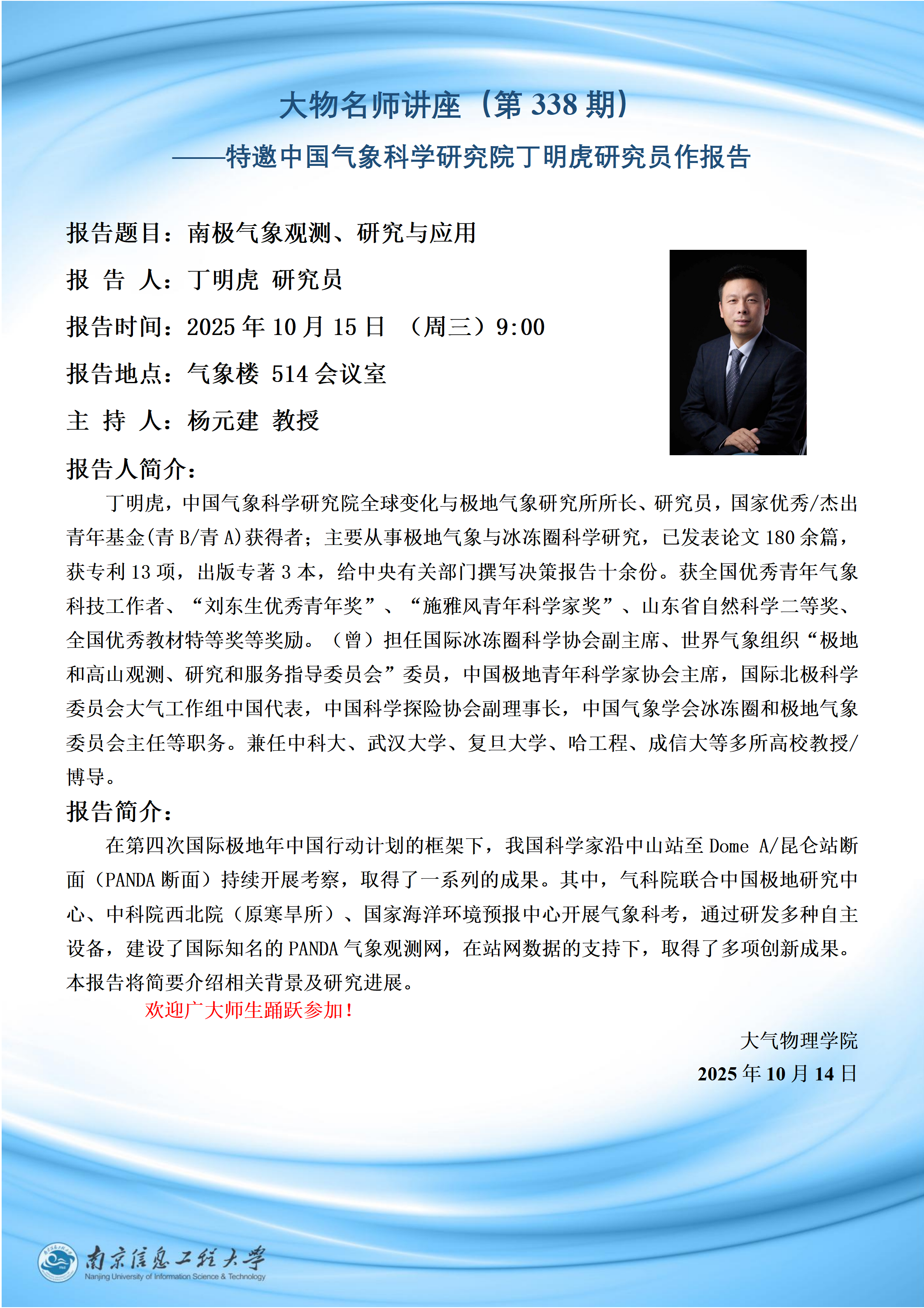 特邀国家卫星气象中心总工程师卢乃锰研究员来校作学术交流
