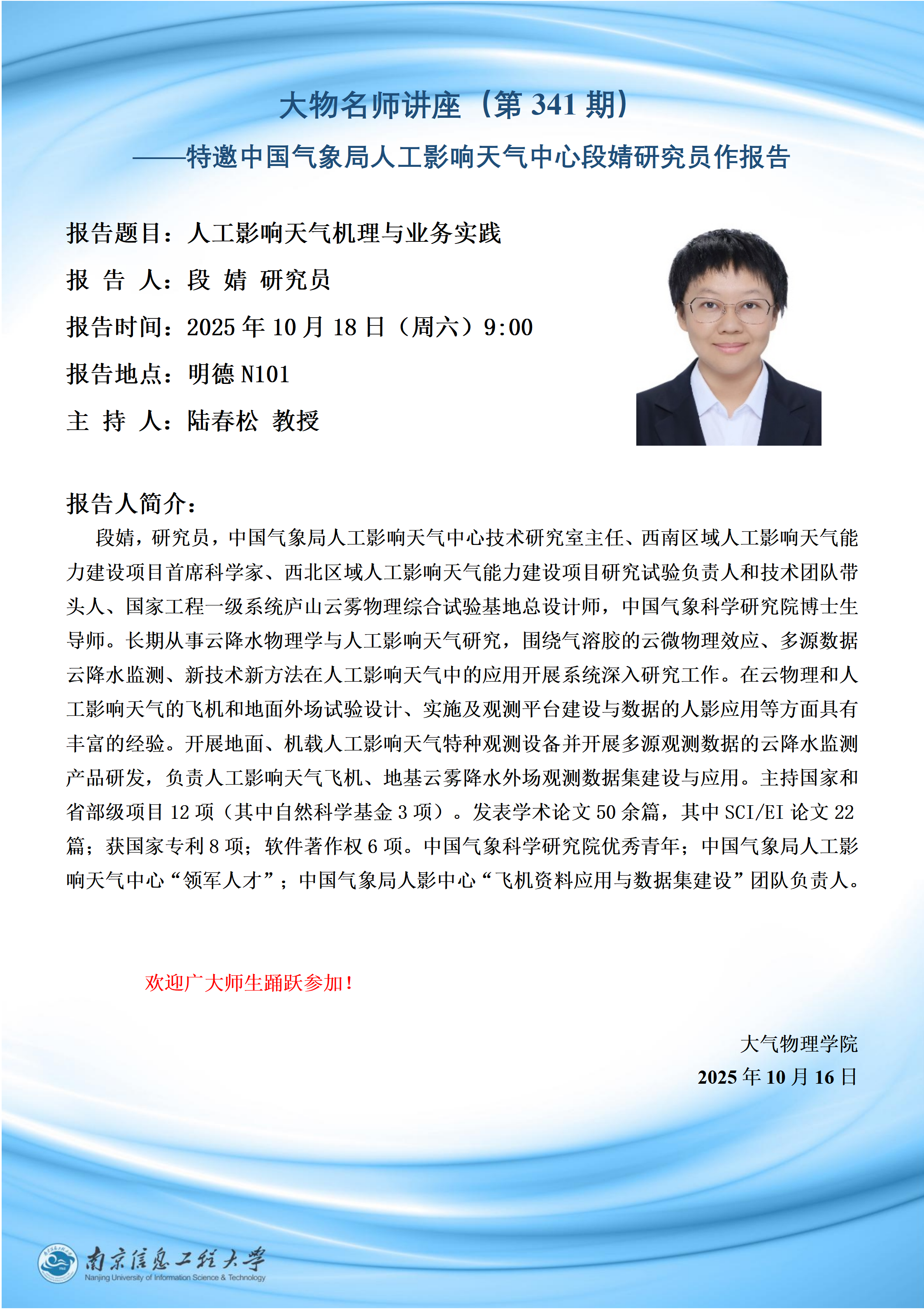 特邀国家卫星气象中心总工程师卢乃锰研究员来校作学术交流