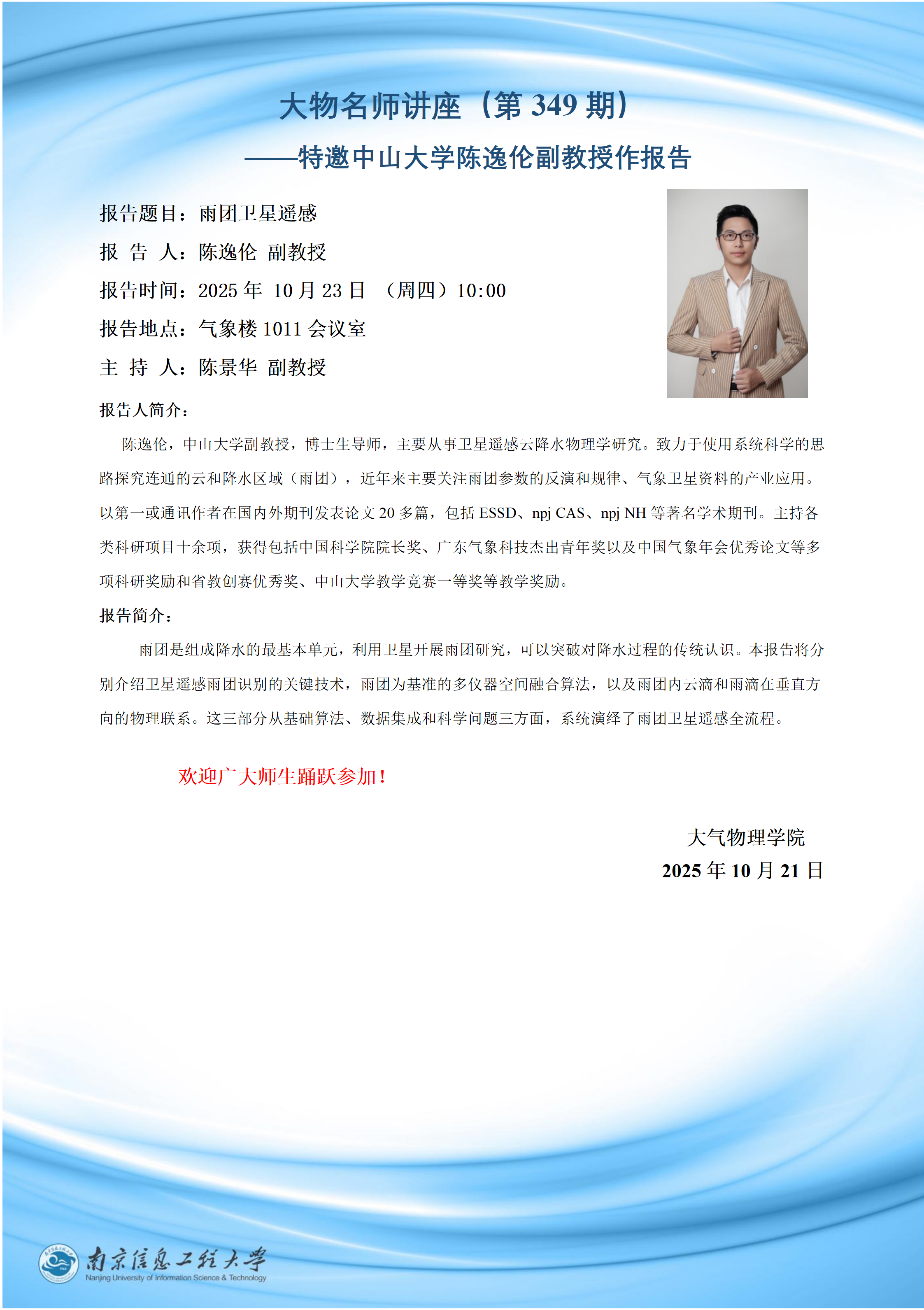 特邀国家卫星气象中心总工程师卢乃锰研究员来校作学术交流