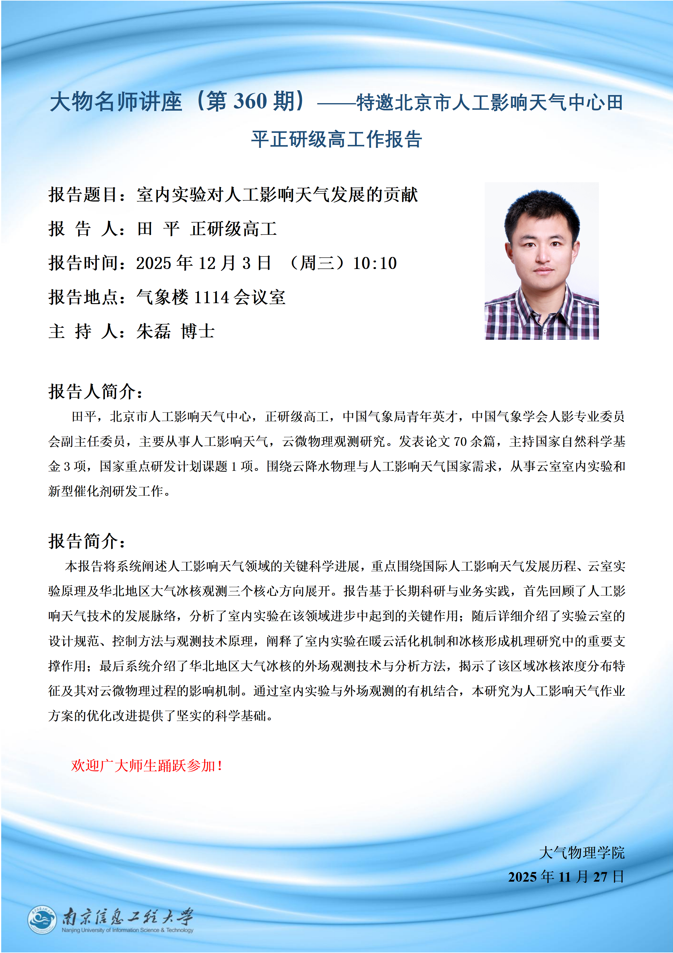 上一条:大物名师讲座(第361期)——特邀中国气象局人工影响天气中心楼小凤研究员作报告