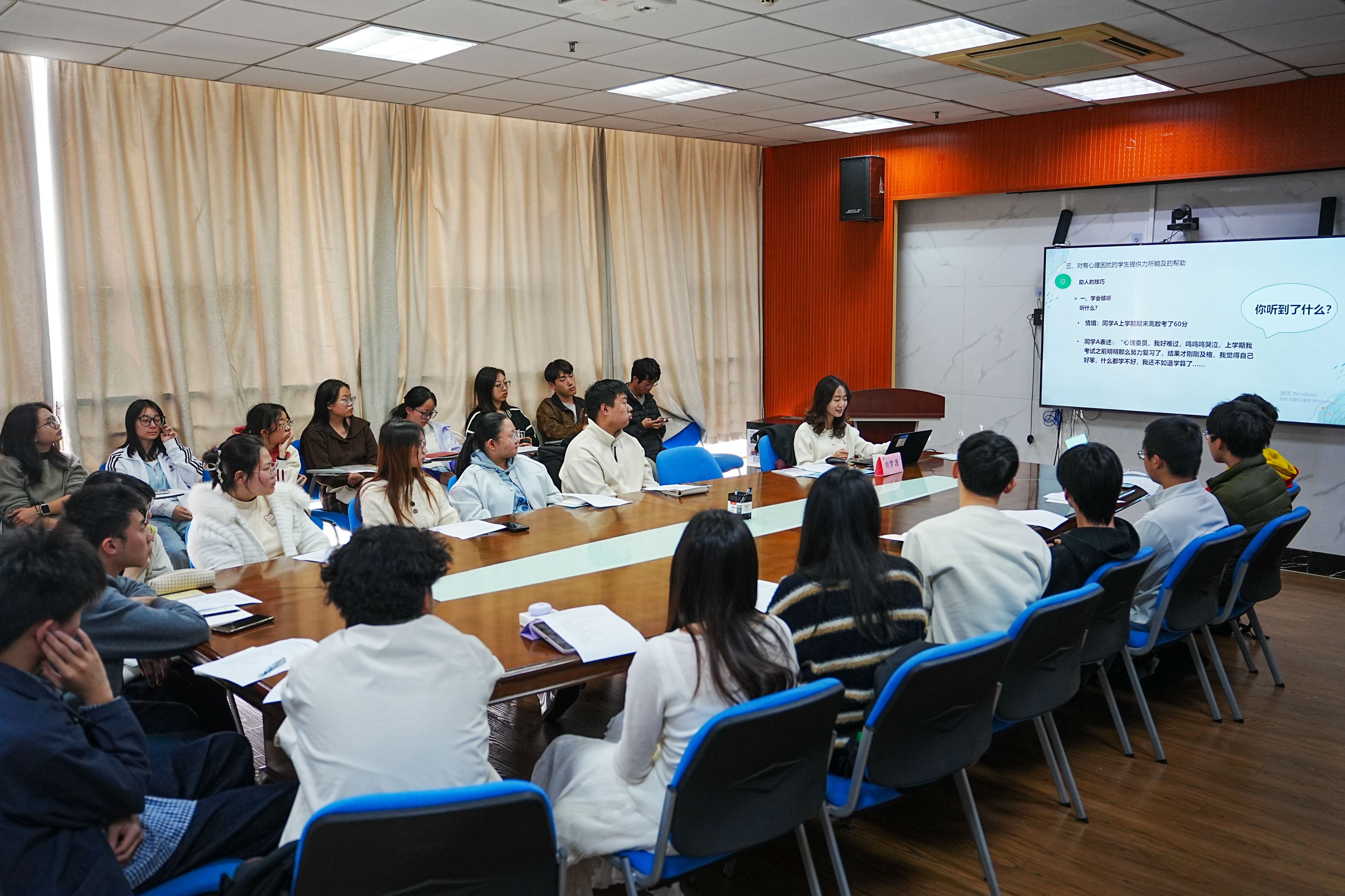 培训现场气氛热烈,参训同学认真聆听、积极交流。大家纷纷表示,通过此次培训,不仅加深了对心理健康工作的理解,也增强了开展朋辈互助的信心与能力。